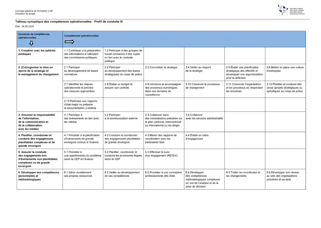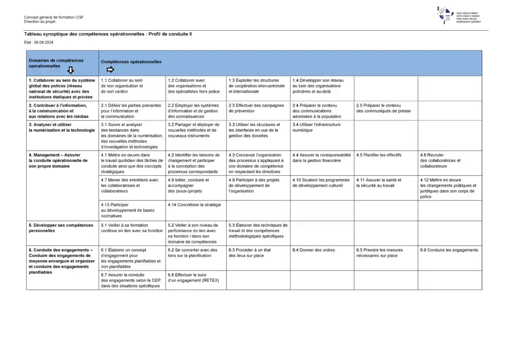 Profil de conduite II « Conduite d’un domaine au sein du corps de police »