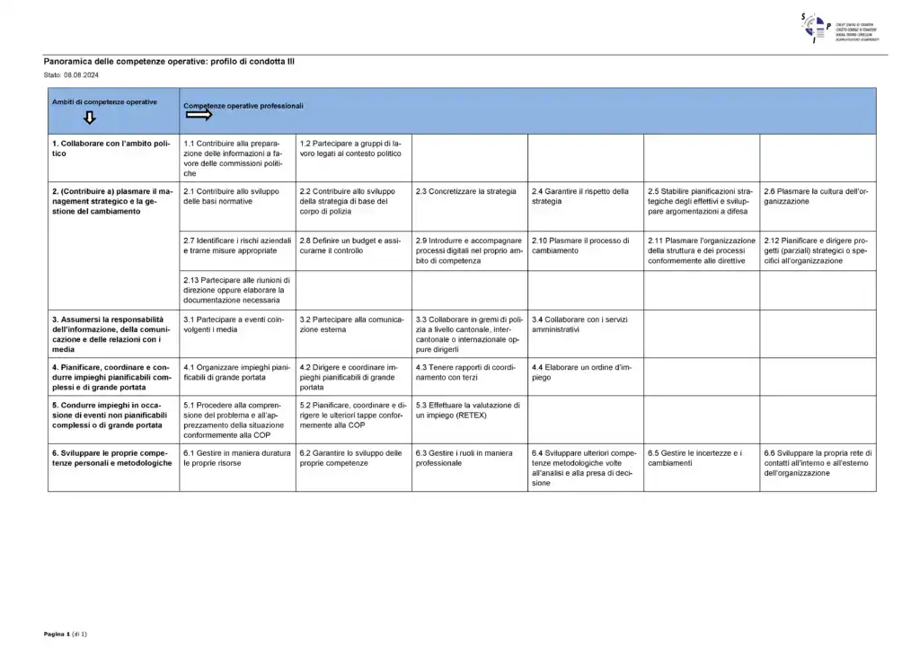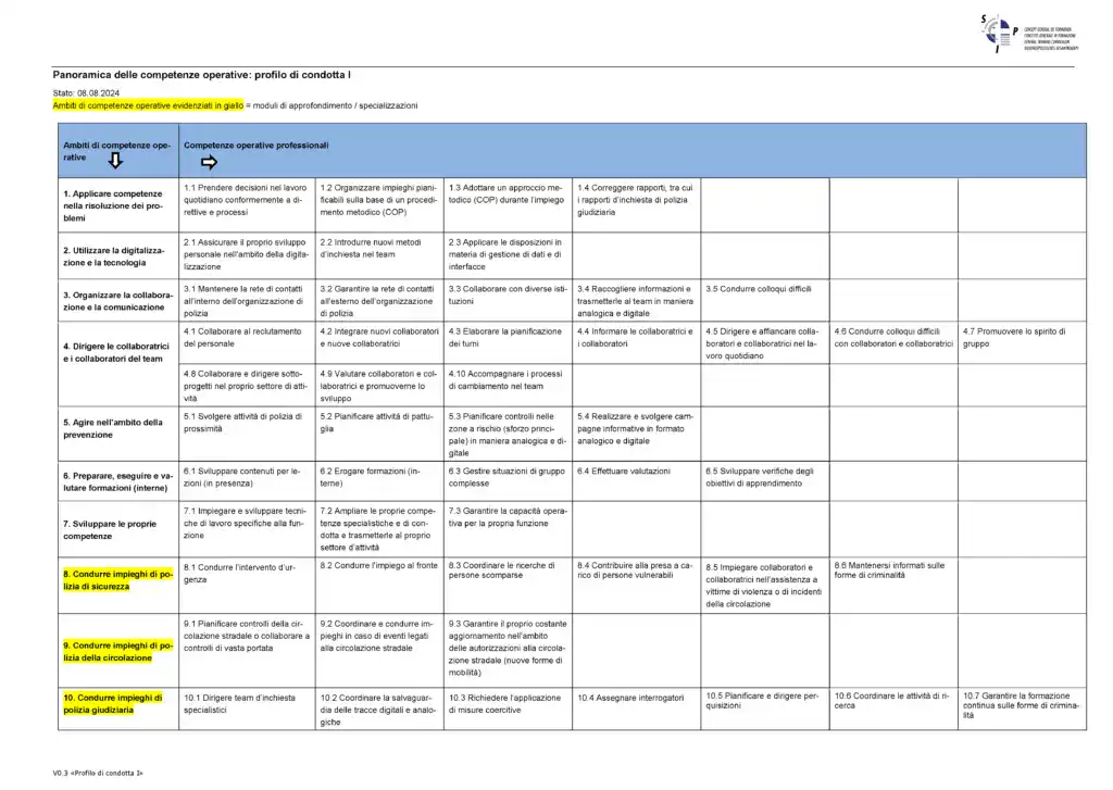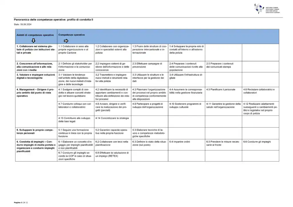 Profilo di condotta II «Condotta di servizi all’interno dei corpi di polizia»